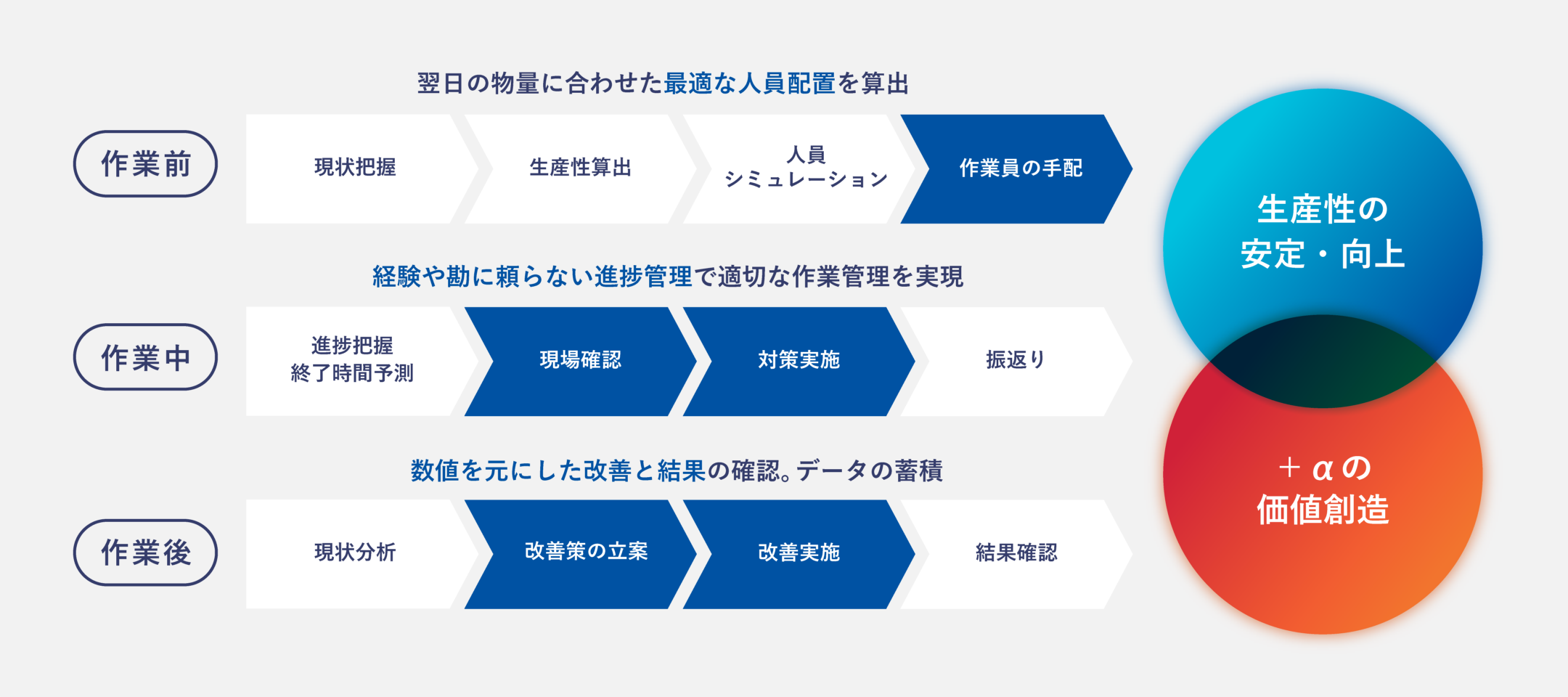次の作業指示が適切に実施できます。作業後の数値を元にした反省、