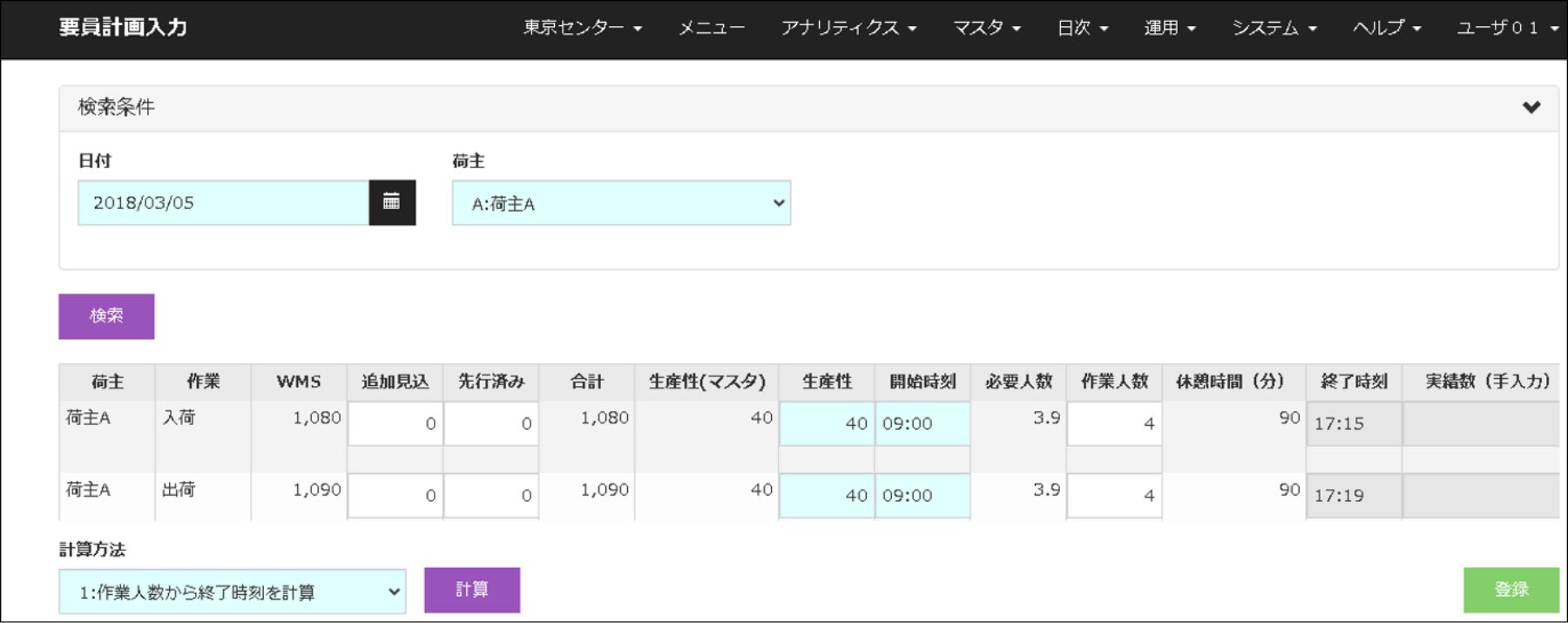 倉庫作業に必要な作業員数を