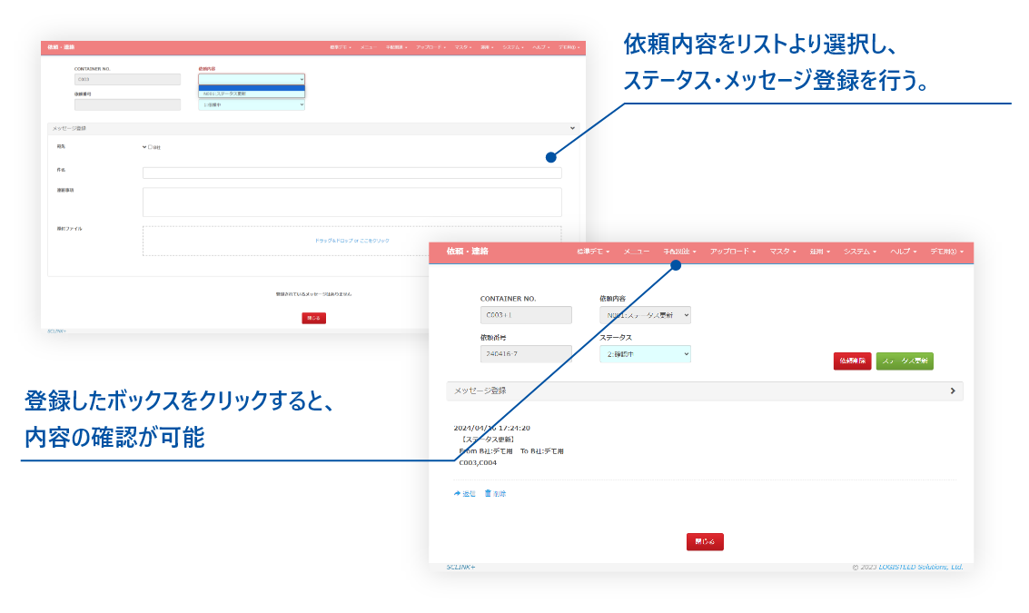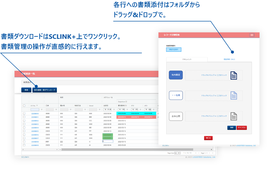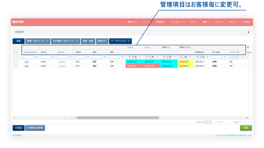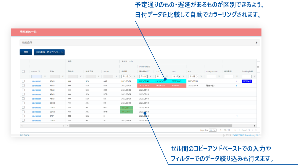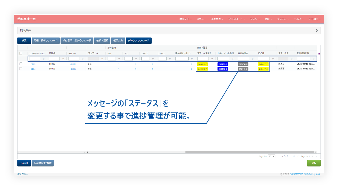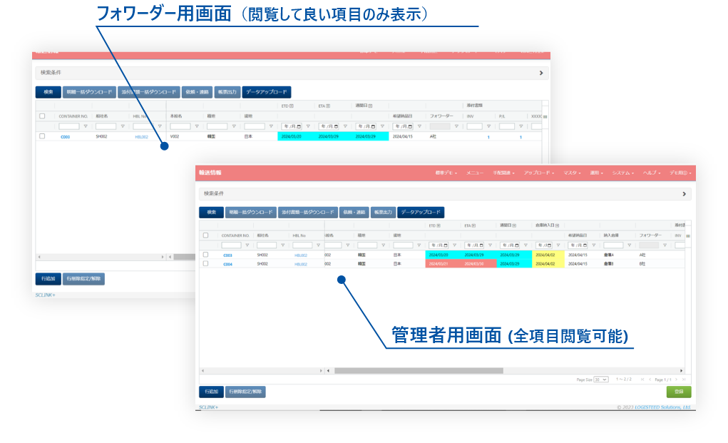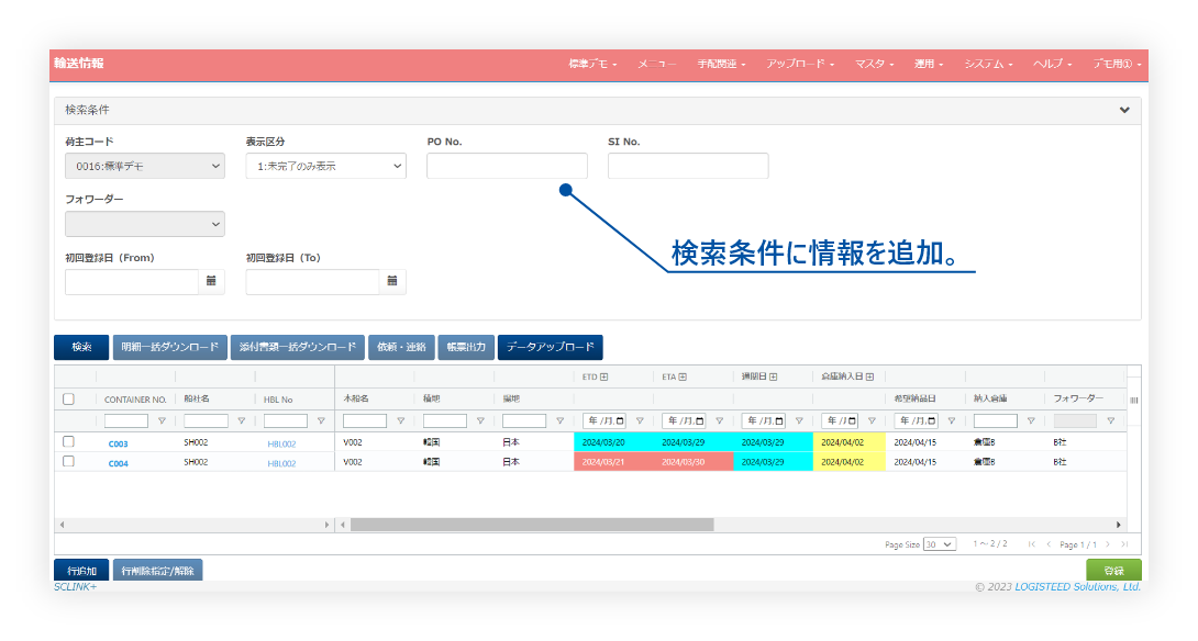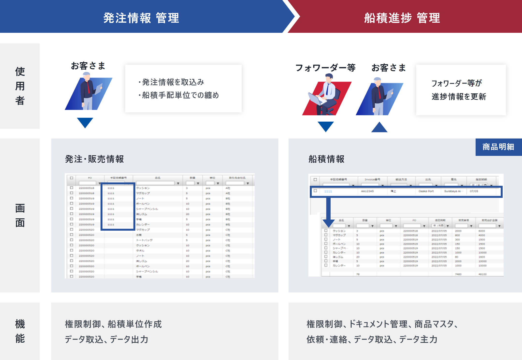 主に2つの画面を使用して、発注情報の管理と船積進捗の管理を実施